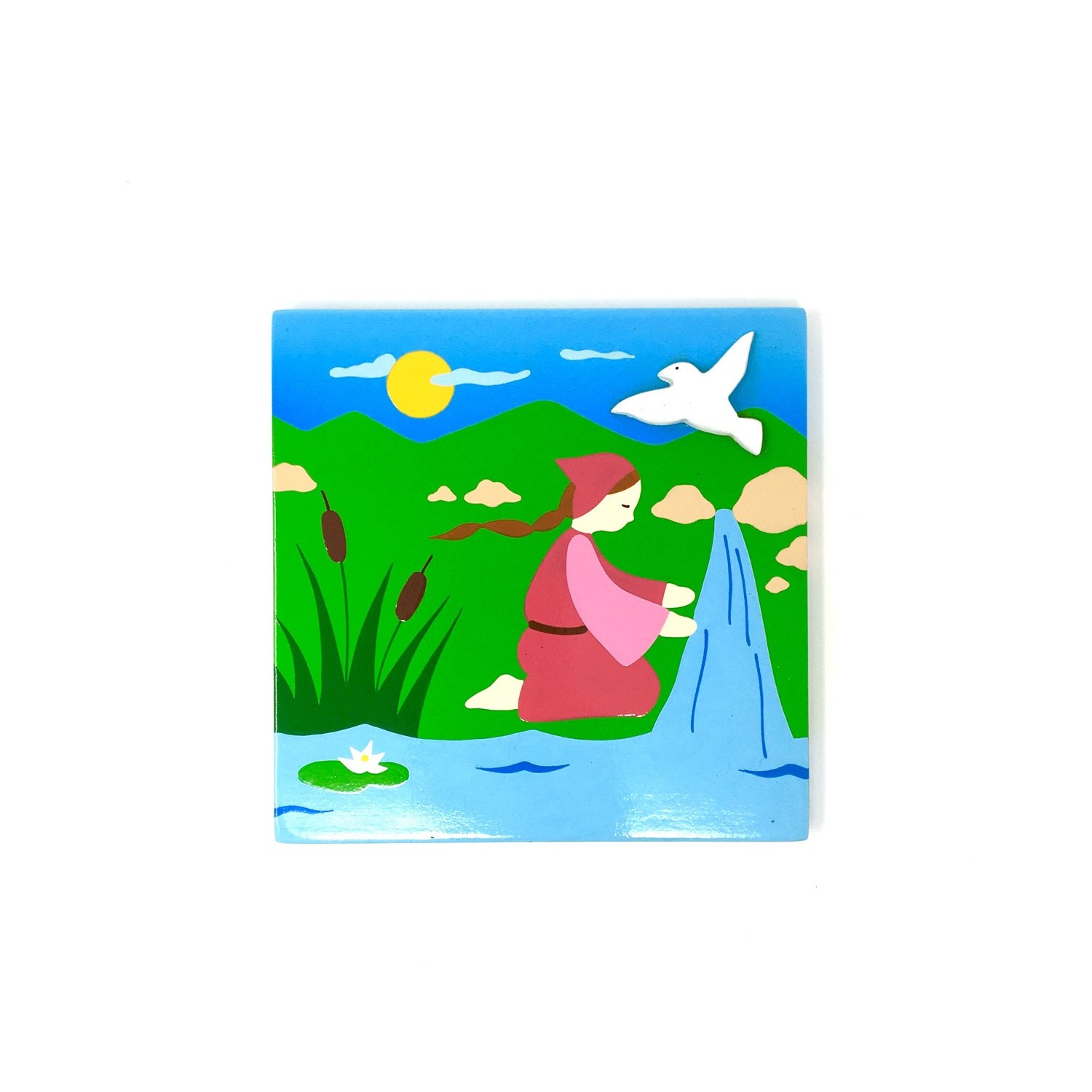 Quadretto Santa Chiara in legno dipinta a mano, produzione solidale con un villaggio nelle Filippine. Da appendere.Personalizzabile.