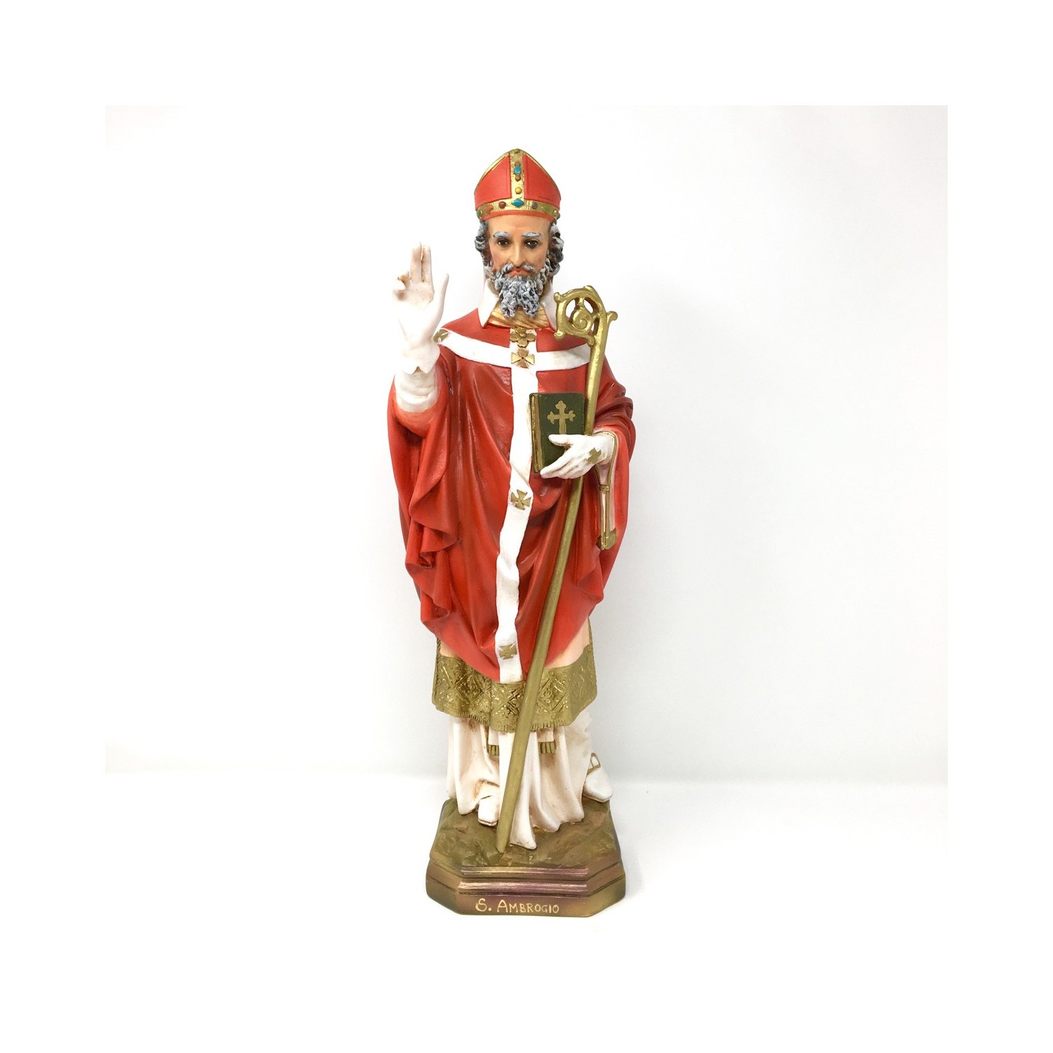 Statua San Ambrogio in gesso fatta e dipinta a mano, opera di alto artigianato italiano.