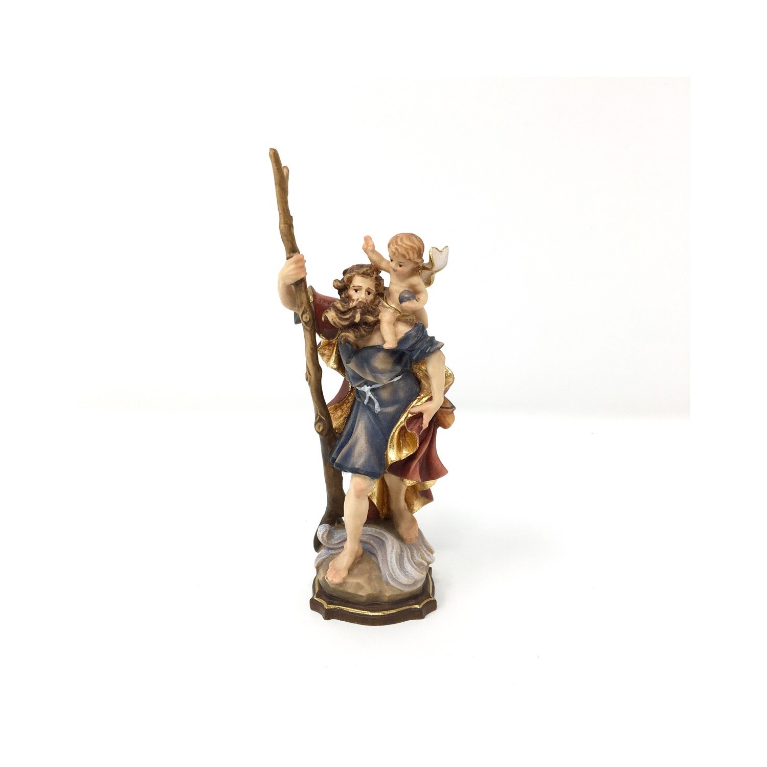 Statuina San Cristoforo in legno cm 12, in legno scolpito e dipinto con colori ad olio dai maestri scultori della Val Gardena.