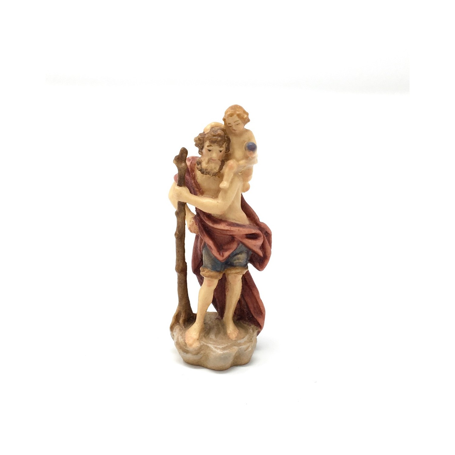 Statuina San Cristoforo in legno cm 7, in legno scolpito e dipinto con colori ad olio dai maestri scultori della Val Gardena.