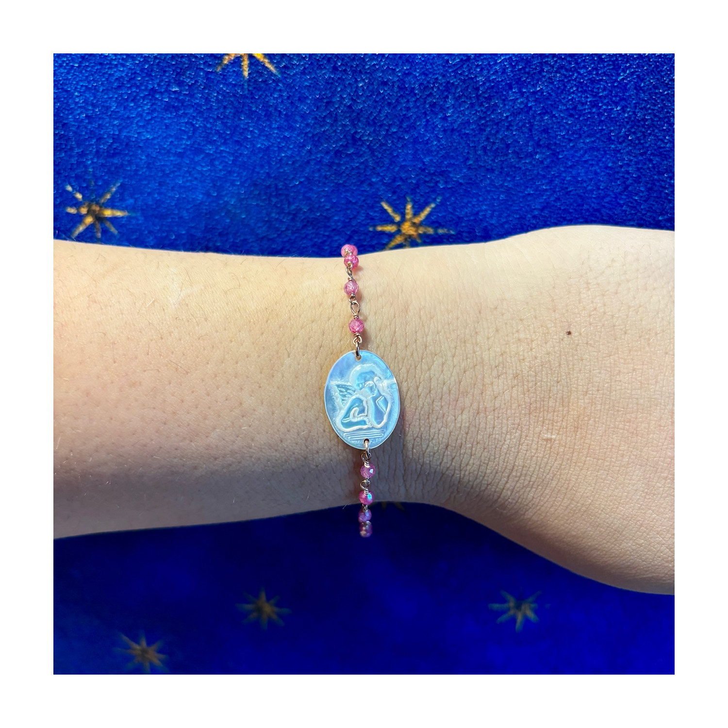 Bracciale in argento 925 con pietre dure angelo in madreperla naturale.